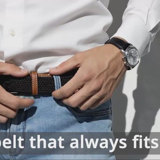 Crafted from durable braided elastic and finished with premium leather details, this belt offers the perfect balance of comfort and sophistication. The no-hole design adjusts easily to your waist — ideal for work, travel, or off-duty wear.