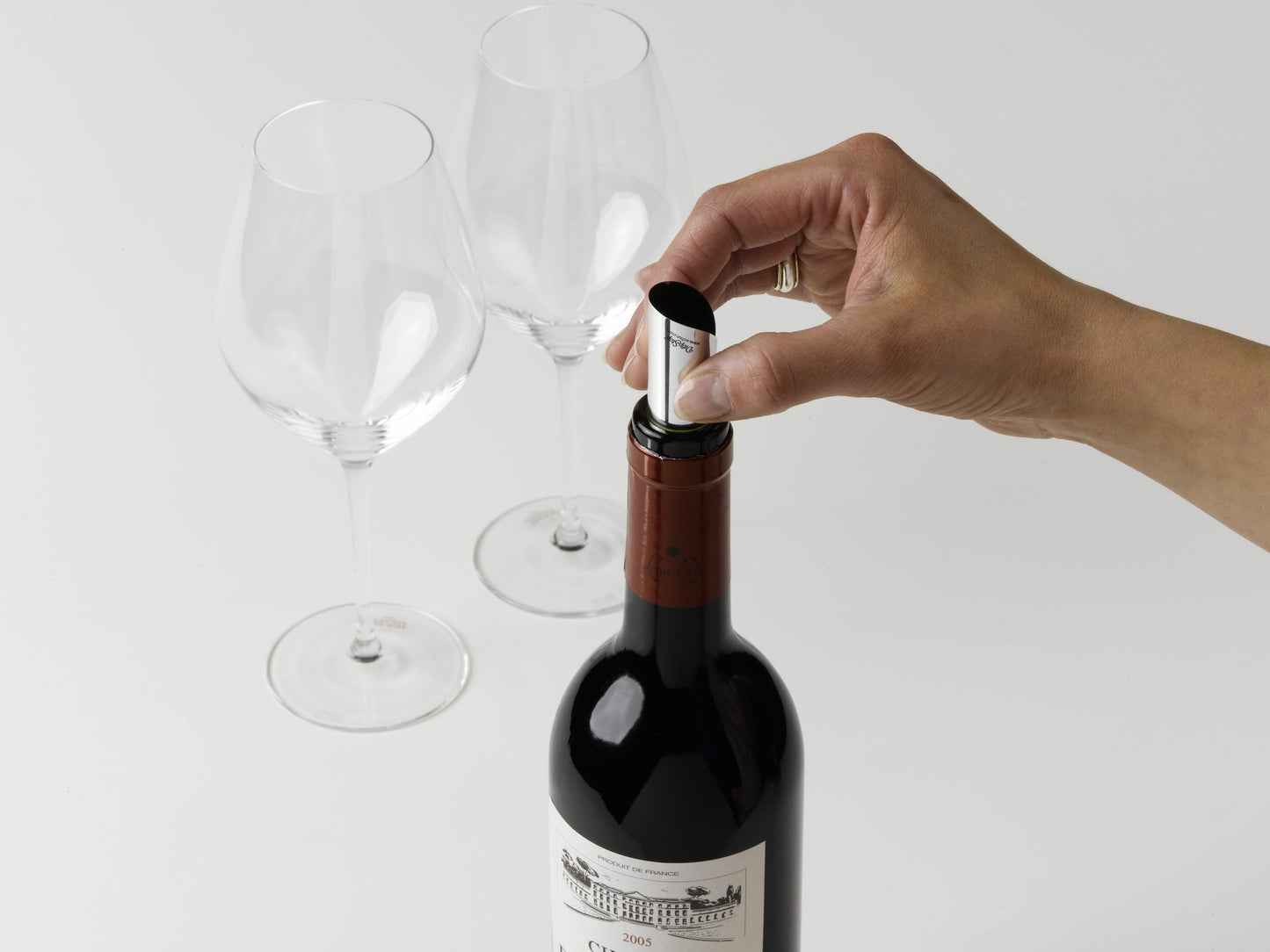 Tired of wasting great beverages on your table or tablecloth? DropStop® is the answer! Just fold the little foil circle, place it in the bottleneck of your wine, champagne, rum, etc., and pour.​