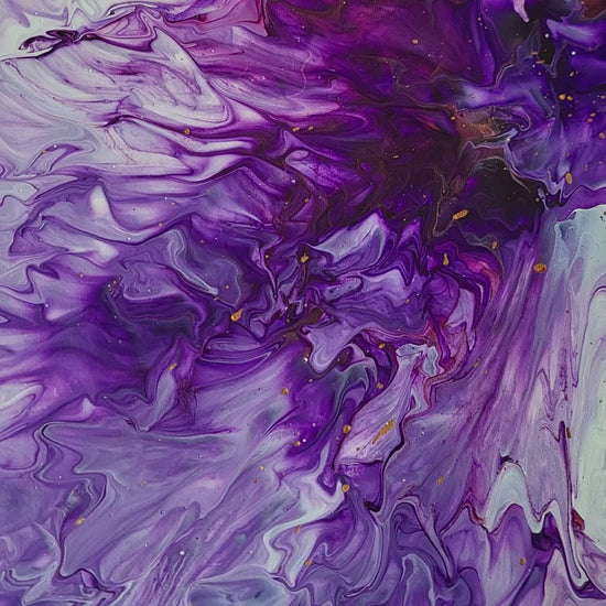 This Flow Art came to life from the beauty of certain colours that were destined to flow together. The purples and pinks are reminiscent of sunsets, deep water, and beautiful spring flowers. What comes to life in your imagination when you see this painting?