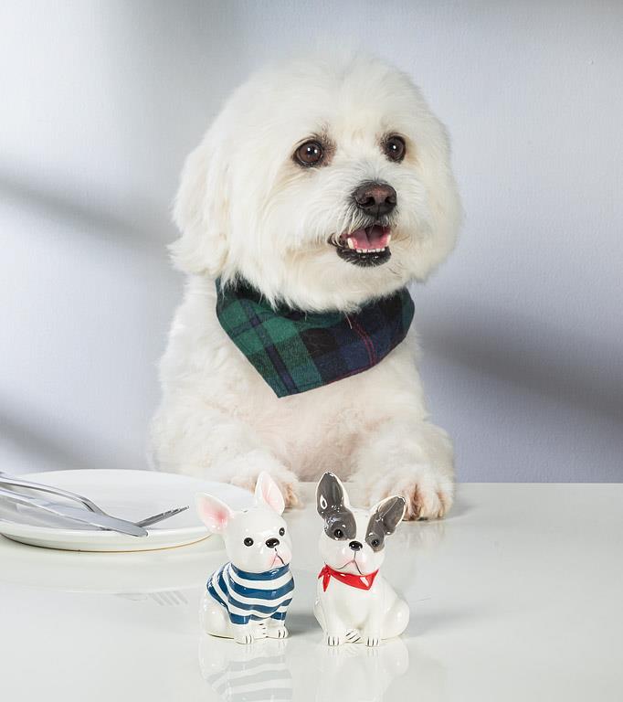 This Frenchie pair is here to spice things up. With sculpted faces and contrasting grey and white finishes, these ceramic shakers bring personality to the table.