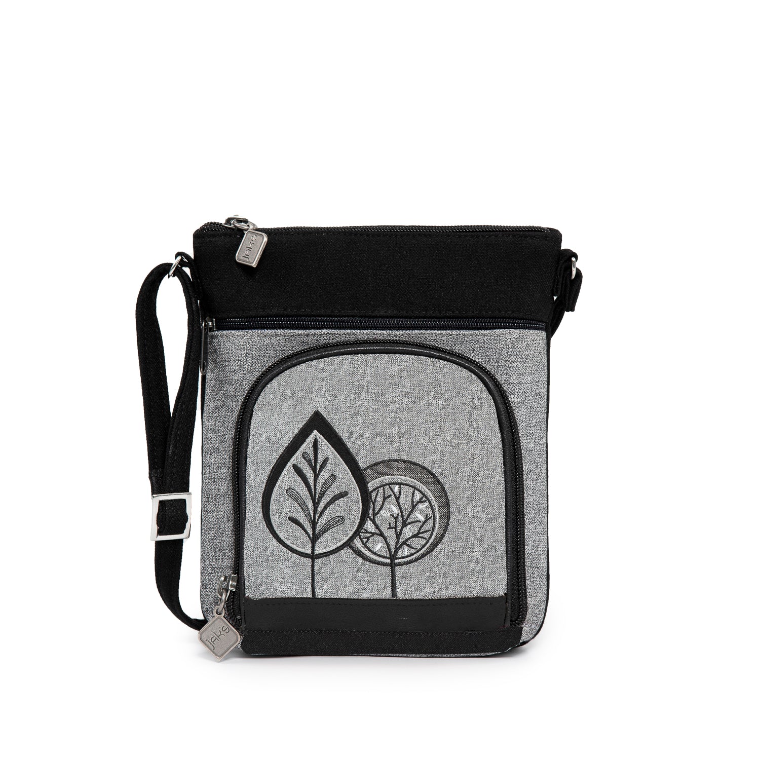 This walking pouch decorated with delicate autumn embroidery is the perfect place to store your essentials. Its organizer pocket on the front, practical for storing your cards and a few personal items, is particularly appreciated. With its adjustable shoulder strap, it is perfect for following you in your daily activities.