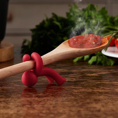 Say hello to Hug Doug. He’s never gonna give you up. He’s never gonna let you down. He’s never gonna let go of your soup spoon. Doug is a wonderful guy, committed to saving your spoon from falling in your soup or making a mess of your countertop. Once he has a hold of your spoon, he’ll hug it tightly, elevating it or stopping it from drifting in to a boiling pot. He’s so thoughtful.