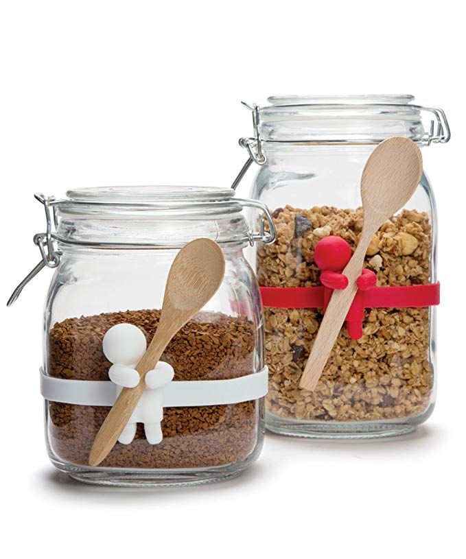 Attachable spoon holder that fits any container diameter between 8-11cm / 3.1 - 4.3".